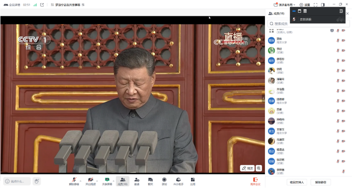 2025年9月3日9时,纪念中国人民抗日战争暨世界反法西斯战争胜利80周年大会隆重举行。91av 硕士生第二党支部全体成员通过腾讯会议的方式线上集体收看直播。在工位、在教室、在宿舍、在图书馆,虽然硕士生第二党支部的同学们或因实习事务、或因学业繁忙而难以齐聚一堂,共享一方物理空间。但在网络的连接中,大家共同沉浸于这一场气势恢宏、意义深远的爱国主义教育盛宴,感受着炽热而深沉的家国情怀。