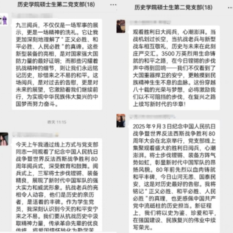 铭记历史铸魂,共筑和平未来丨91av 硕士生第二党支部线上集体观看九三阅兵