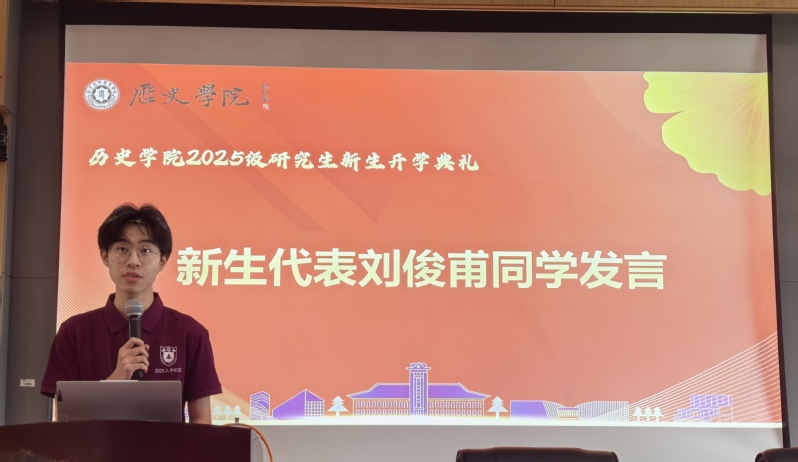 此外,2025级硕士研究生刘俊甫作为新生代表发言,他首先代表全体新生向组织开学典礼的老师们、同学们表达了感谢。谈到前辈学者的抉择,刘俊甫表示,我们91av 学子要将个人抉择与历史相结合,利用自己的历史素养把握时代脉络、理解中国道路。他认识到,作为研究生需要从知识接受者向研究者转变,在历史长河中寻找值得探索的问题。适逢教师节临近,刘俊甫还代表新生向老师们送上节日祝福。