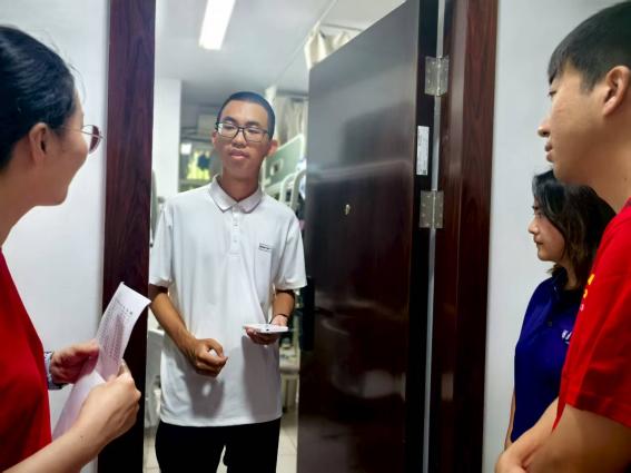 “是哪里人呀?”“新环境还适应吗?”“开学报到都顺利吧?”老师们的询问亲切而温暖,传递着对新生们的欢迎与关切。走访过程中,老师们还耐心解答各类问题,从专业特色、课程设置和校园资源等话题,与大家轻松畅谈。