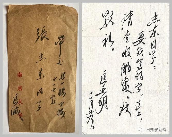 当时我读此信时,没有认真体悟,只认为是匡校长对我留信的回复。匡校长已逝去多年,以后我再细读此信,对于他待人的谦虚礼让,让我生出了更多的感慨。短信不到30字,行文格式庄重、规整、严谨。“志东同学”右上顶格,“匡亚明”左下落名,还用了“送上”“请”“查收”“酌处”等谦词,显示出这位德高望重的教育家襟怀开阔和对一位素未谋面的学生的尊重与关爱。