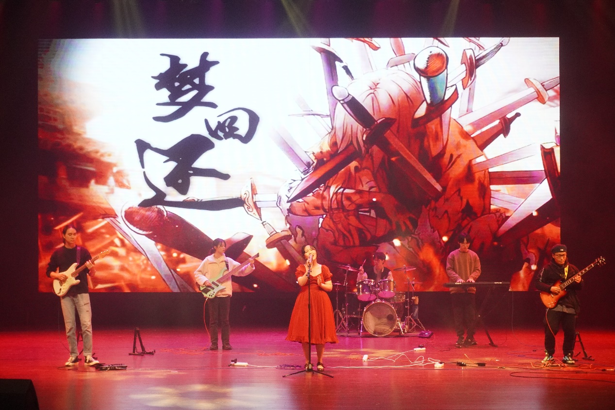 可尔必思乐队热烈激昂的《梦回还》奏响这一崭新的篇章,“记忆与爱填满这一个心脏”,主唱同学清脆而有力的嗓音配着乐器的合奏声直抵人心,点燃了会场观众的热情。