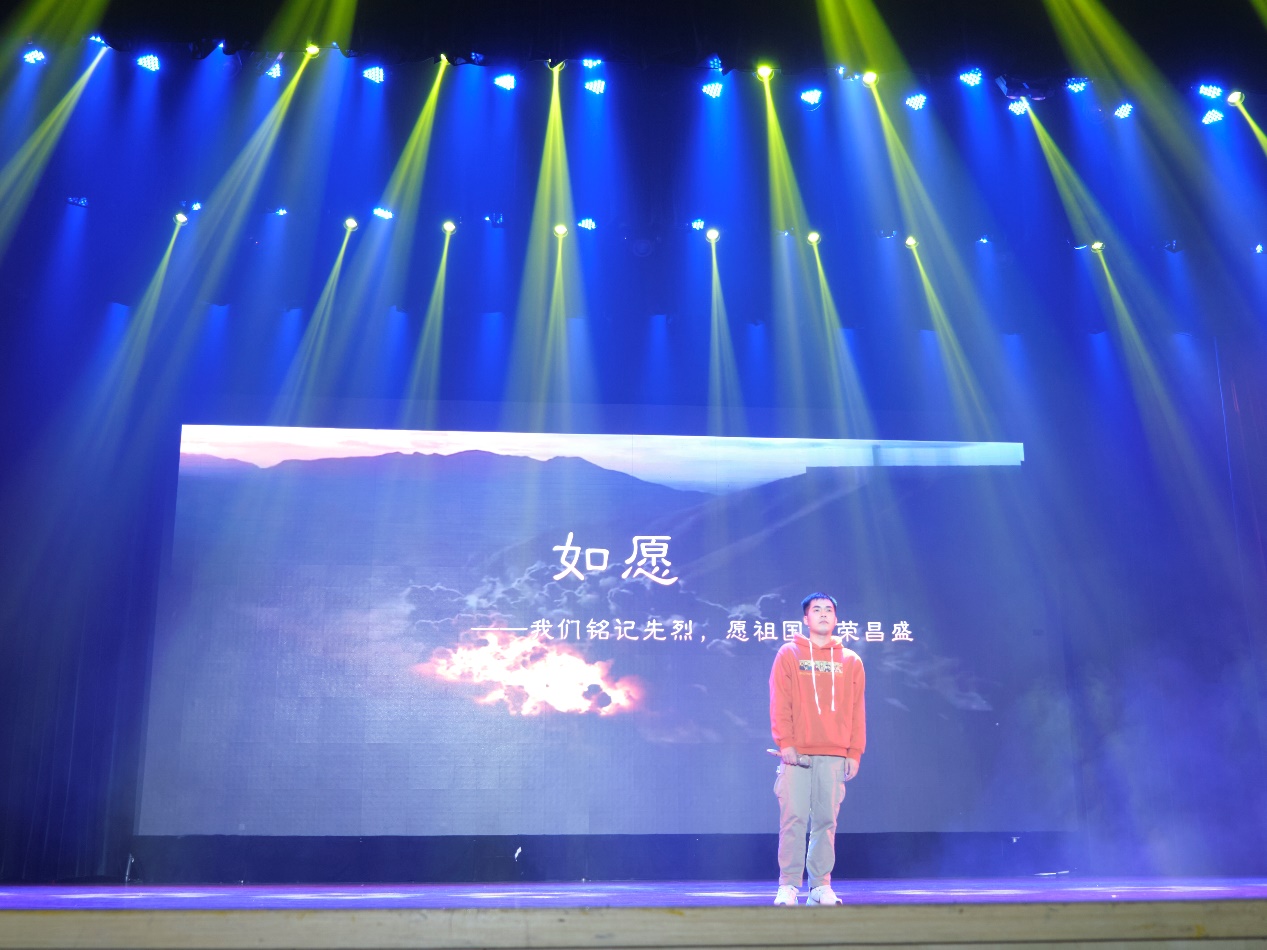 在晚会的末尾,李逸凡等同学合唱《我和我的祖国》。歌声中流淌出对党、对祖国的美好祝福,凝聚起全体观众的爱国情。