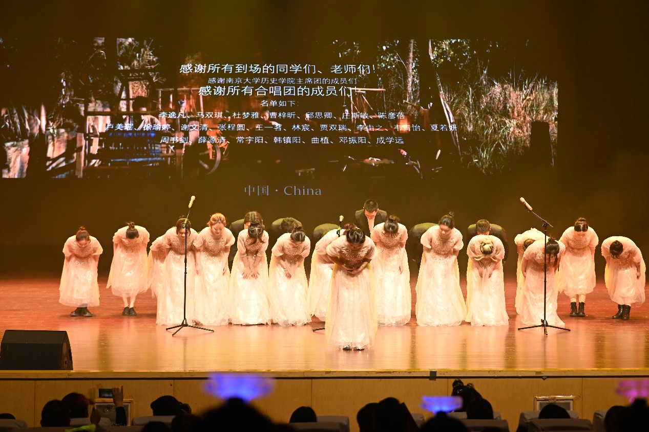 从两江师范优级学堂一路走到如今的仙林校区大美楼,多少欣喜与感动,多少泪水与笑容,百廿的风云与史语,依然回响在南雍山下。晚会上每一个节目,都倾注了祝福,每一张相片,都记录下感动,多少历史学人心的结晶,在此刻凝聚成为这一夜最亮的发声。