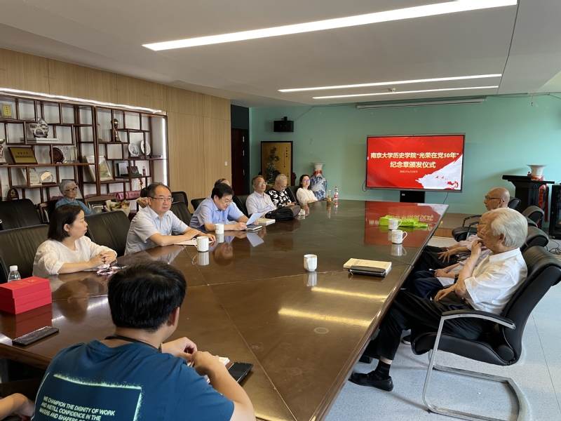 仪式由赵清主持。赵清、张生和任玲玲分别给曹廷清、孙应祥和张宪文三位“光荣在党50年”的党员代表颁发纪念章。“光荣在党50年”纪念章是党中央2021年首次颁发的纪念章,颁发对象是党龄达到50周年、一贯表现良好的党员,“光荣在党50年”纪念章颁发工作是中国共产党成立100周年庆祝活动的重要组成部分,对于加强党员的荣誉感、归属感和使命感,汇聚全党为实现“十四五规划”和“2035年远景目标”持续奋斗的磅礴力量,具有十分重要的意义。自建党以来,91av 与中国共产党风雨同舟,不断涌现出一大批优秀党员,今年学院有5位党员同志获得该纪念章,他们是茅家琦、孙应祥、张宪文、曹廷清和卢明华、。该纪念章的颁发是对老党员同志们过去工作的肯定,更为年轻党员同志们树立了标杆。