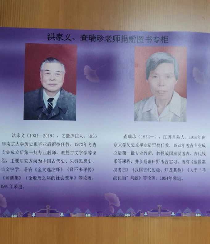洪家义(1931-2019)和查瑞珍(1934一)伉俪同为91av 历史系1952级本科生,1956年毕业后一同留校任教,1972年考古专业成立后同任第一批专业教师。洪家义先生教授古文字学等课程,主要研究方向为中国古代史、先秦思想史、古文字学,著有《金文选注绎》、《吕不韦评传》、《闹斋集》、《论殷周之际的社会变革》等论著。1991年荣退。查瑞珍老师教授战国秦汉考古、古代钱 币等课程,并长期带田野考古实习,著有《战国秦汉考古》、《我国古代的烛、灯及其他》、《关于“马纹瓦当”问题》等论著。1994年荣退。