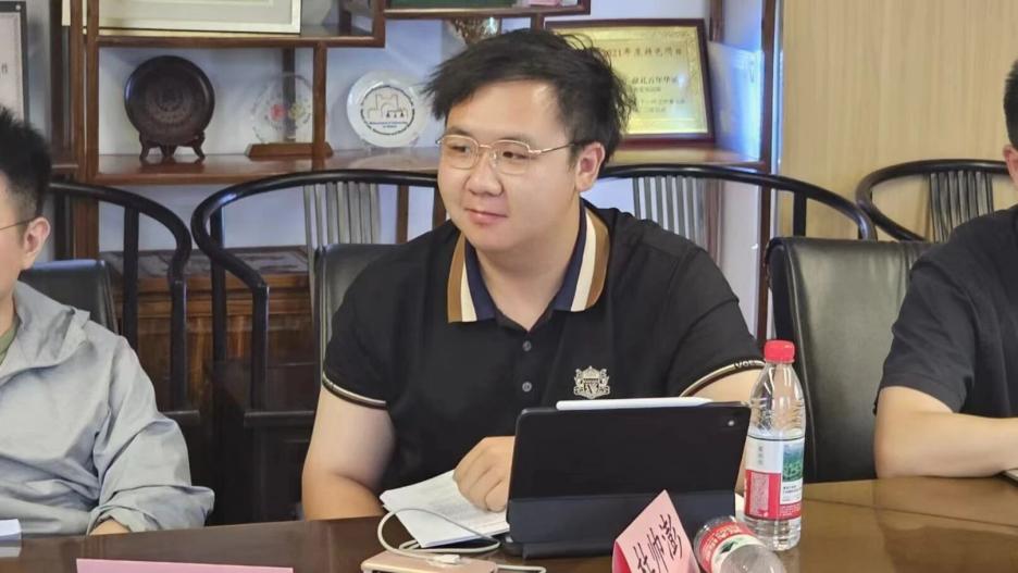 主持党支部主题研讨的杜帅澎