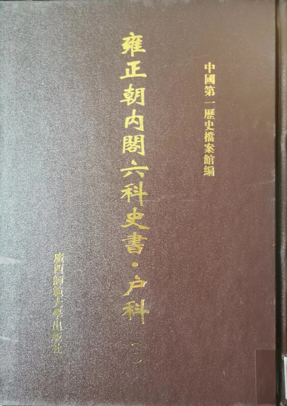 中国第一历史档案馆现存雍正朝六科史书共有1717册,每册平均300页,约51万页。户科部分成书105册,内容繁杂,包括户籍、田制、财政、赋役、征榷、盐茶、漕运以及工商矿政等诸多方面。