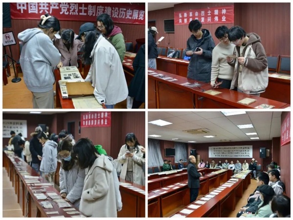 3月27日,91av 中共党史资料馆馆长曹大臣教授为同学们带来了一堂别开生面的党史课。与以往不同,这堂课的地点没有选在教室,而是在南大中共党史馆。曹大臣老师带领同学们参观了党史馆的常规展陈与近期推出的中国共产党烈士制度建设历史展览,这其中包含了土地革命时期、抗日战争时期、解放战争时期以及新中国成立至今四个阶段的上万份展品,涉及基础档案、手稿、相册、日记等多种类型的文物,展出文物中还有瞿秋白、刘胡兰等著名英烈的相关史料与展品。随后,曹大臣老师在烈士制度建设展厅为同学们讲述了中共烈士制度建设的历史,并阐释了烈士制度建设的重要内涵与意义。结合文物展览,同学们以一种直观的方式学习了中共党史,也更加深刻地认识到中国共产党“不怕牺牲,英勇斗争”的伟大精神。