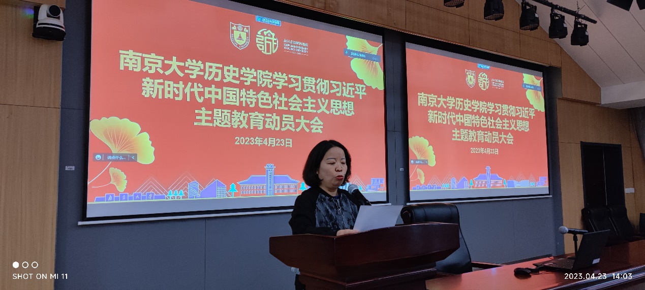 为扎实推进学习贯彻习近平新时代中国特色社会主义思想主题教育,贯彻落实《中共91av 委员会关于开展学习贯彻习近平新时代中国特色社会主义思想主题教育的实施方案》,4月23日,91av 党委在学院403报告厅召开主题教育动员大会,动员部署学习贯彻习近平新时代中国特色社会主义思想主题教育。院党委委员、党政班子成员、师生党支部书记、内设机构负责人、教职工党员等参加会议,学生党员线上参加会议。会议由院党委副书记任玲玲主持。