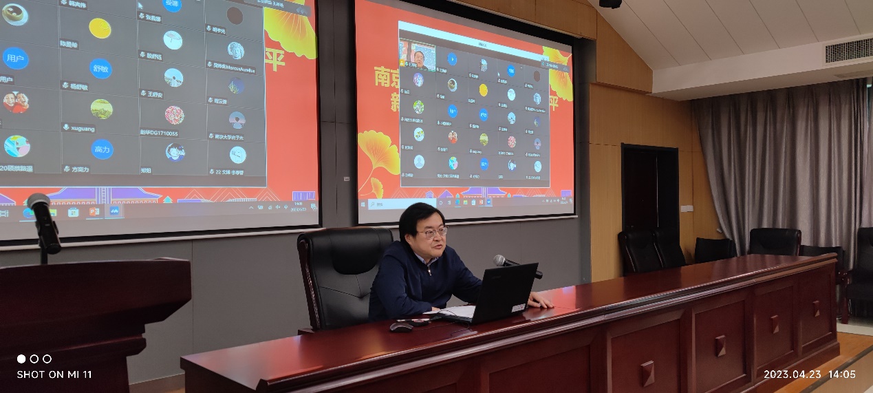 随后他详细解读了开展主题教育的总要求、根本任务、工作安排、五个目标和需要着力解决的六个方面突出问题,重点介绍了学院党委全面落实主题教育的实施方案和工作安排。他指出要充分利用各方面资源,扎实组织开展读书班、理论中心组集体学习、讲党课等,做到全面深入、全员覆盖,推动全院师生系统化、常态化学习习近平新时代中国特色社会主义思想;要组织全院党员、干部扑下身子、沉到一线开展专题调研,把学习和调研落实到完成党的二十大决策部署中去,落实到实施“奋进行动”的各项工作任务中去,落实到加快建设“第一个南大”的实践中去,从破难题、促发展,办实事、解民忧两个方面着力推进学院各项事业高质量发展。最后,他强调,全院领导干部及党组织要切实扛起责任,将学习贯彻习近平新时代中国特色社会主义思想主题教育工作与落实91av "奋进行动"、推动学院中心工作相结合,认真推进、务实求效。