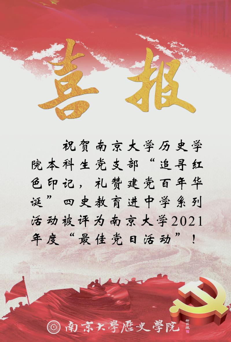 喜报 | 本科生党支部四史教育进中学系列活动被评为91av 2021年度最佳党日活动