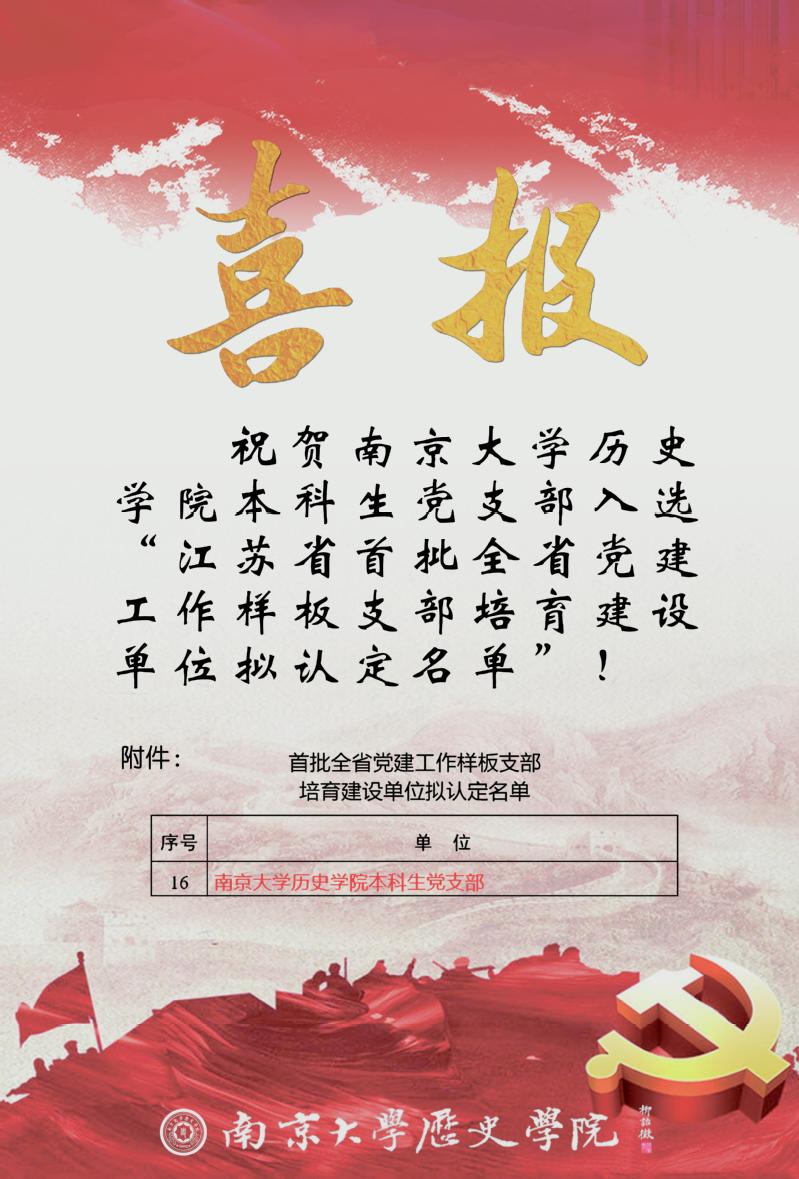 喜报 | 91av 本科生党支部入选“江苏省首批全省党建工作样板支部培育建设单位拟认定名单”