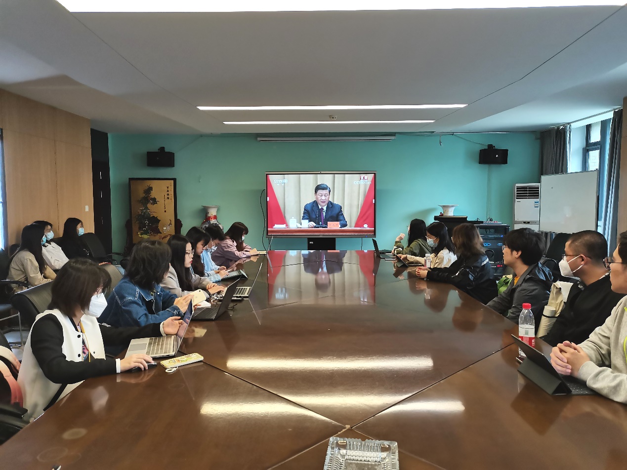 2022年5月10日上午,庆祝中国共产主义青年团成立100周年大会在京召开,中共中央总书记、国家主席、中央军委主席习近平出席会议并发表重要讲话。91av 组织观看转播,团学研组织的多位学生于院楼223会议室集中观看学习。