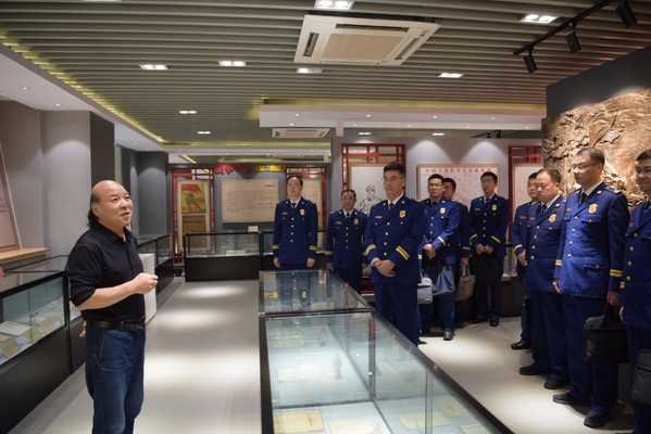 4月29日下午,江苏省消防总队40余人到党史馆参观学习,曹大臣老师亲自为参观者讲解介绍了馆内展览文物。