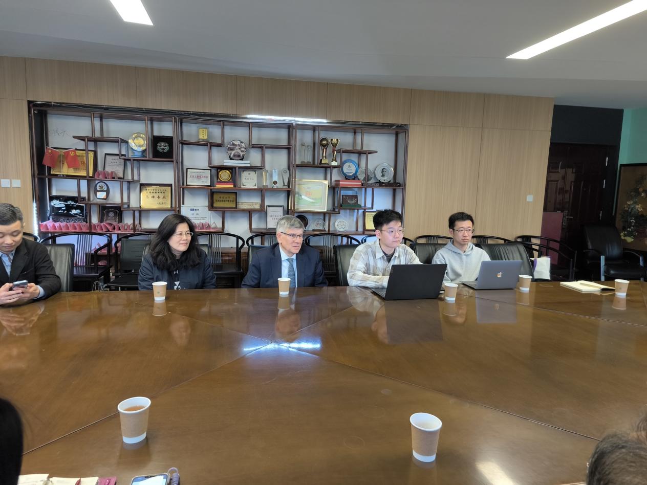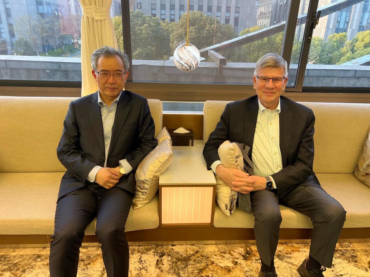 在来访期间,91av 校长谈哲敏院士、党委副书记陈云松教授分别会见柯伟林教授,就两校合作展开深入探讨。谈哲敏校长向柯伟林教授简要介绍了91av 的办学历史和发展情况,希望柯伟林教授继续关心南大历史学科的发展,支持南大与哈佛大学之间的合作。陈云松副书记对柯伟林教授为91av 与哈佛大学交往作出的突出贡献表示衷心感谢,强调中美关系走到了一个微妙的十字路口,亟需专业学者的“布道”,解除误会,并提出双方合作,共同设计一门高水平国际化通识课程的构想。柯伟林教授对此提议表示认可,他高度重视91av 在中美交流中的意义,此次来访是他首次在91av 开展有关中美关系的讲座。柯伟林教授还以他在哈佛大学开设的通识课程《美国和中国》为例,建议该国际化通识课程融合两校优势资源,聚焦历史与当代中美交往的具体案例,邀请历史事件中的亲历者参与教学,结合回忆录、口述材料、报刊、学术研究及政府公报等史料,通过课堂辩论、嘉宾讲座等形式,引导学生深入理解中美关系的复杂性与合作潜力。双方就推进两校学术合作、共建国际化高水平通识课程达成重要共识,计划组建联合教研团队,推动师生互访、合作研究及教材开发,致力于将课程打造为国际化通识教育的典范。会见期间,柯伟林教授向谈哲敏校长赠送了其最新学术专著,彰显双方学术互鉴的诚意。