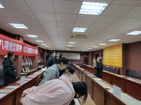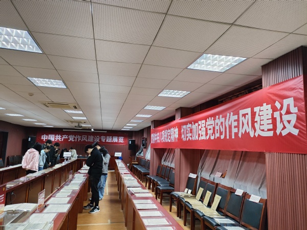 4月3日,91av 中共党史资料馆馆长曹大臣教授带领91av 研究生同学们参观了近期展出的中国共产党作风建设专题展览。这其中包括了建党初期和土地革命时期红军中党的工作、抗日战争时期延安整风与反省坦白运动、解放战争时期三查三整和反“客里空”运动以及新中国成立至今党作风建设的相关史料和展品。随后曹大臣老师为同学们讲述了党风建设的历史,并阐释了作风建设对党的重要意义。结合文物展览,同学们以直观的方式学习了中共党史,也认识到新时代贯彻八项规定精神,加强党的作风建设的重要性。