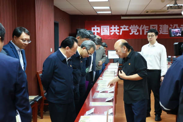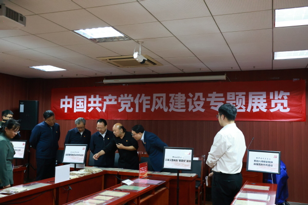 2025年4月7日下午4时,91av 党委书记谭铁牛、校长谈哲敏及领导班子全体成员到91av 中共党史资料馆进行八项规定读书班学习。在曹大臣教授的带领下,领导班子一行人参观了中国共产党作风建设专题展览。