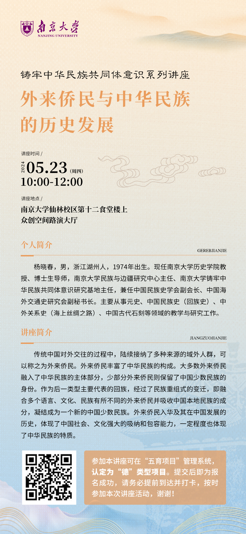 讲座预告丨铸牢中华民族共同体意识系列讲座:外来侨民与中华民族的历史发展