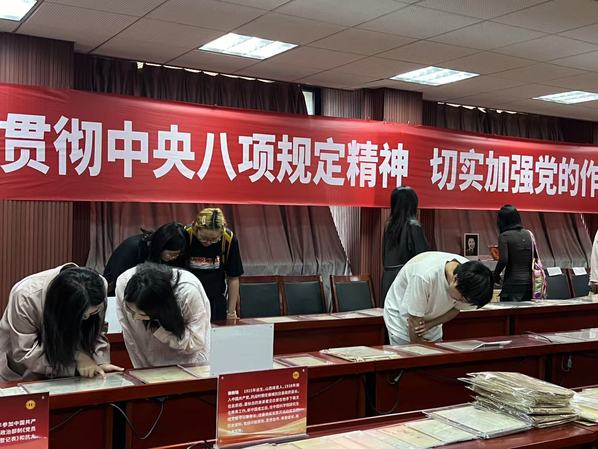 2025年4月21日下午2时,91av 浦口校区研究生党员先锋服务站、91av 法学院2024级法学硕士党支部、91av 艺术学院研究生第一、第二党支部参观91av 中共党史资料馆、中国共产党作风建设专题展览。