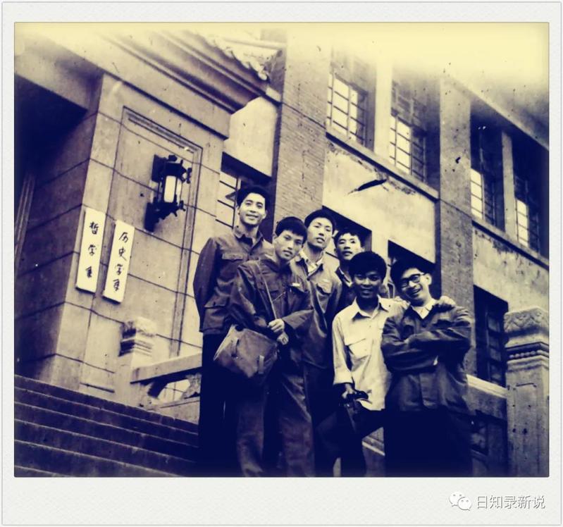 1978年高考在那骄阳似火的日子如期而至。考前一晚,后排最左边这位同学感觉紧张的复习在临战前该打住了,于是早早上床睡觉,想以饱满精神迎接明天考试。可是,思潮滚滚,怎么都睡不着,数阿拉伯数字,越数头脑越清晰;起床空腹喝三四两老白干,依往常经验本该昏昏欲睡,这回也失灵,依然精神焕发。无奈,拍着脑袋,骂了三声,然后说:爱咋地咋地!次日头脑昏昏沉沉上考场,考政治。好在底子好,且开考后人还能潜能爆发,思维居然依然敏捷,最后开局顺利!(照片摄于南大西南楼)