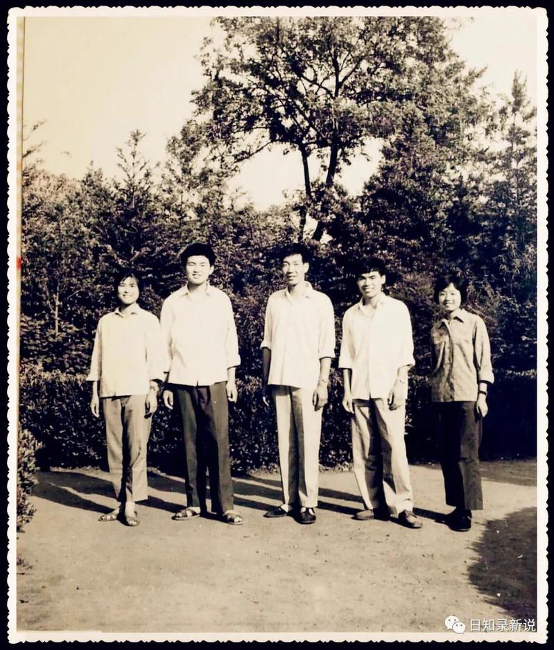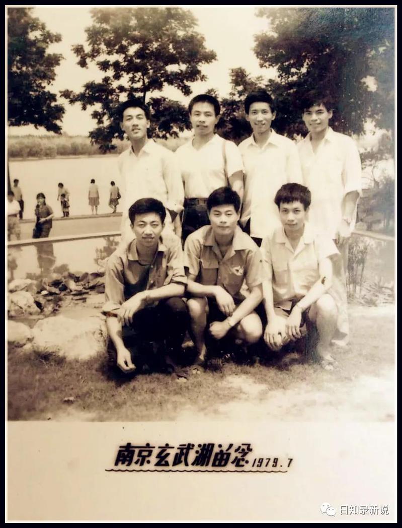 前排中间这位,1978年高考考了409分,这在文科中是个不错的成绩。他报的第一志愿是中国人民大学。然而这么好的成绩,却左等右等等不来录取通知。原来人大很满意他的成绩,却不满意他的政审(家庭有海外关系)。于是犹犹豫豫中一直扣住他的档案,未转第二、第三志愿的录取学校,直至全部录取工作结束,最终决定不录取他,才放出档案,此时为时已晚,竟让他成了落榜生!后来南大扩招专科生,他才有幸挤上末班车。那年他29岁,再拖一年,他就没资格考大学了。(照片摄于南京雨花台)