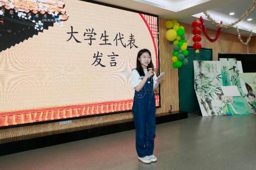 5月16日下午,在一楼报告厅举行的研学宣誓仪式上,南大91av 学生代表尤姝懿深情发言。她表示此次研学是一场跨越年龄的文化对话,由衷感谢朝天宫民族小学与博物馆搭建的宝贵平台,让大学生们得以与小学生携手,共同探寻江南文脉。在她看来,酒、茶、咖啡这些饮品载体,承载着深厚的文化内涵,更是连接不同代际的重要纽带,她满怀期待双方能在互动中碰撞出智慧的火花,共同传承中华文明。