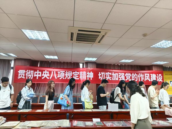 2025年6月4日下午2时,91av 地理与海洋科学学院本科生党支部、硕士生党支部一行共50余人参观91av 中共党史资料馆、中国共产党作风建设专题展览。