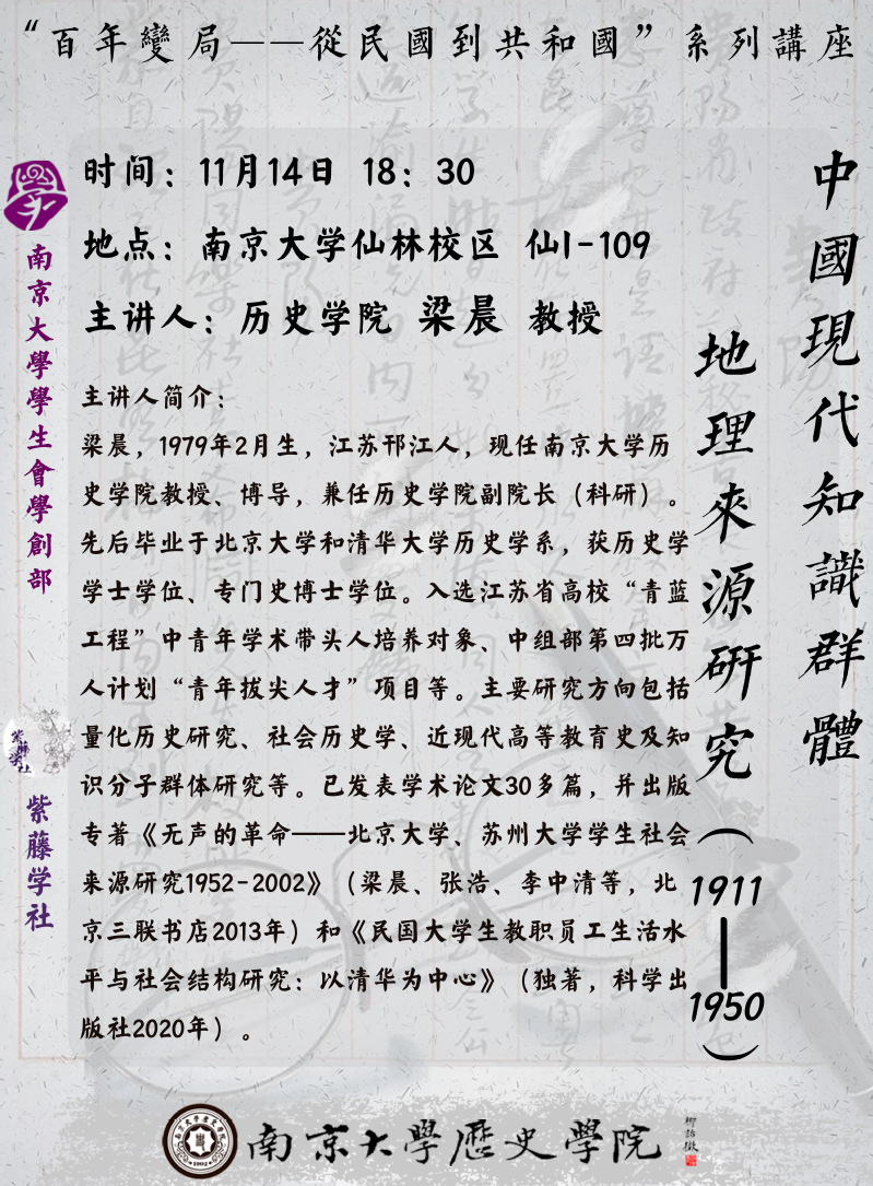 欢迎感兴趣的同学参加,更多“百年变局——从民国到共和国”系列讲座敬请期待。