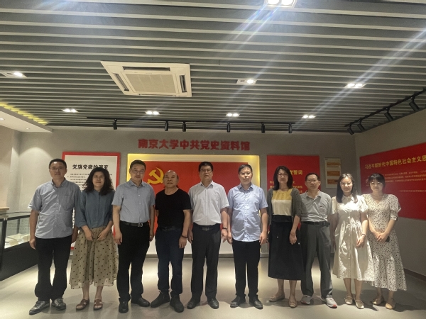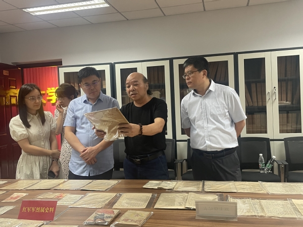 7月10日下午,中央党史和文献研究院信息资料馆领导一行人到91av 党史资料馆参观。党史馆馆长曹大臣教授为到访来宾介绍了馆藏革命文物情况。曹大臣教授(右一)向参观领导讲解革命文物展品91av 教授与中央党史和文献研究院信息资料馆领导合影