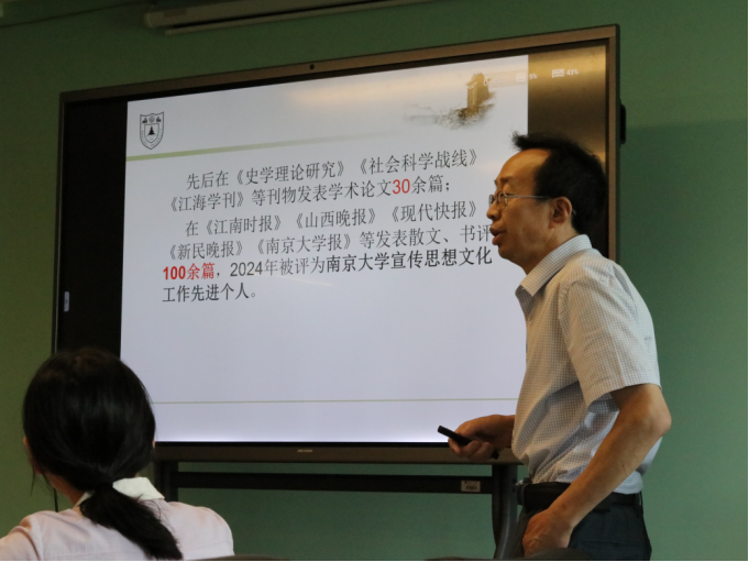 武黎嵩副教授围绕91av 口述历史研究中心近五年以来的工作成果进行汇报,介绍了目前出版的口述历史丛书及思想史研究书籍,以及多个口述史项目的组织与推进情况。他还展示了南大91av 围绕口述史所产出的科研育人成果,并表达了推动公共史学共同体构建的决心与展望。