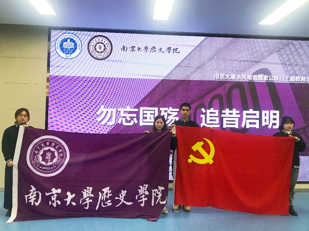本科生党支部走进金陵华兴实验学校东校区,为该校初一的同学们带来一场关于南京大屠杀死难者国家公祭日的主题教育活动。本次活动由本科生党支部书记田捷老师带队,党支部成员高豫来同志、杨宏山同志及周茹同志参加。