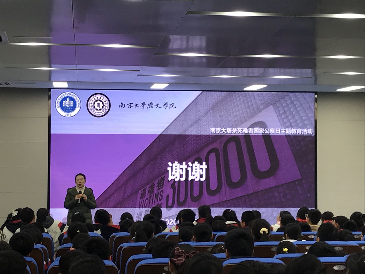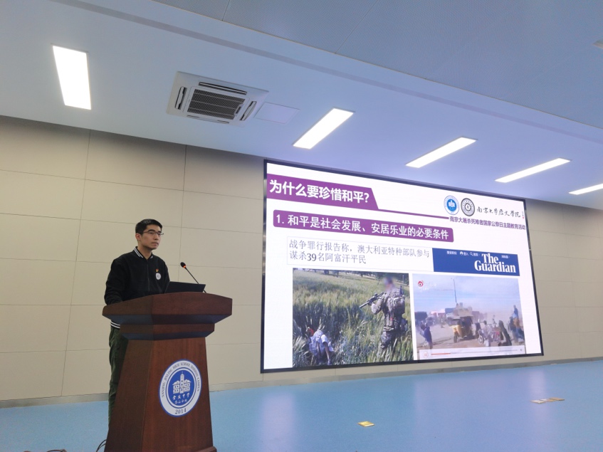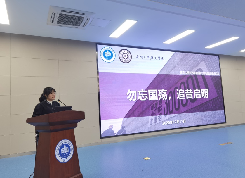 在活动开始之前,由金陵华兴实验学校东校区学工处许沐宇主任发言,向在座师生介绍了支部前来分享的成员,并着重强调了此次国家公祭日主题教育活动的严肃性和意义所在。