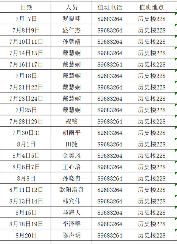 2025年暑假院图值班安排