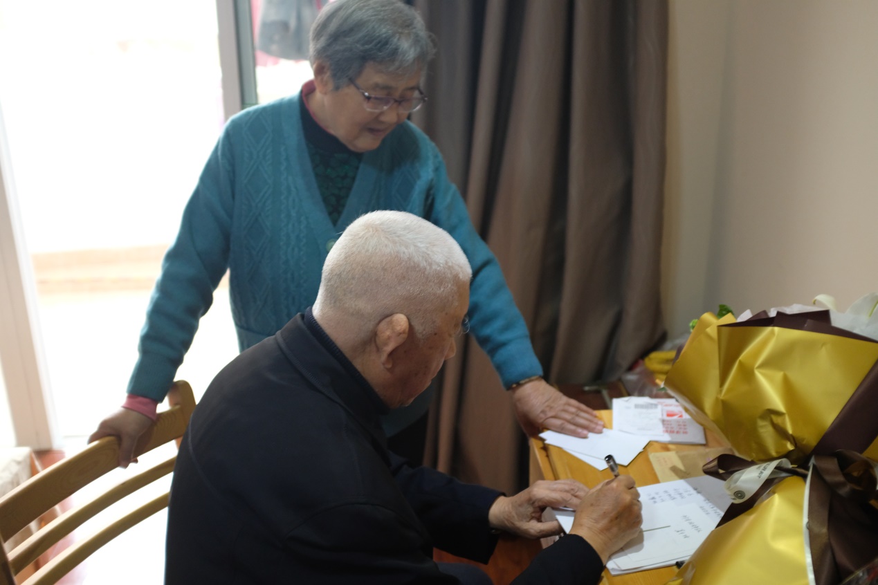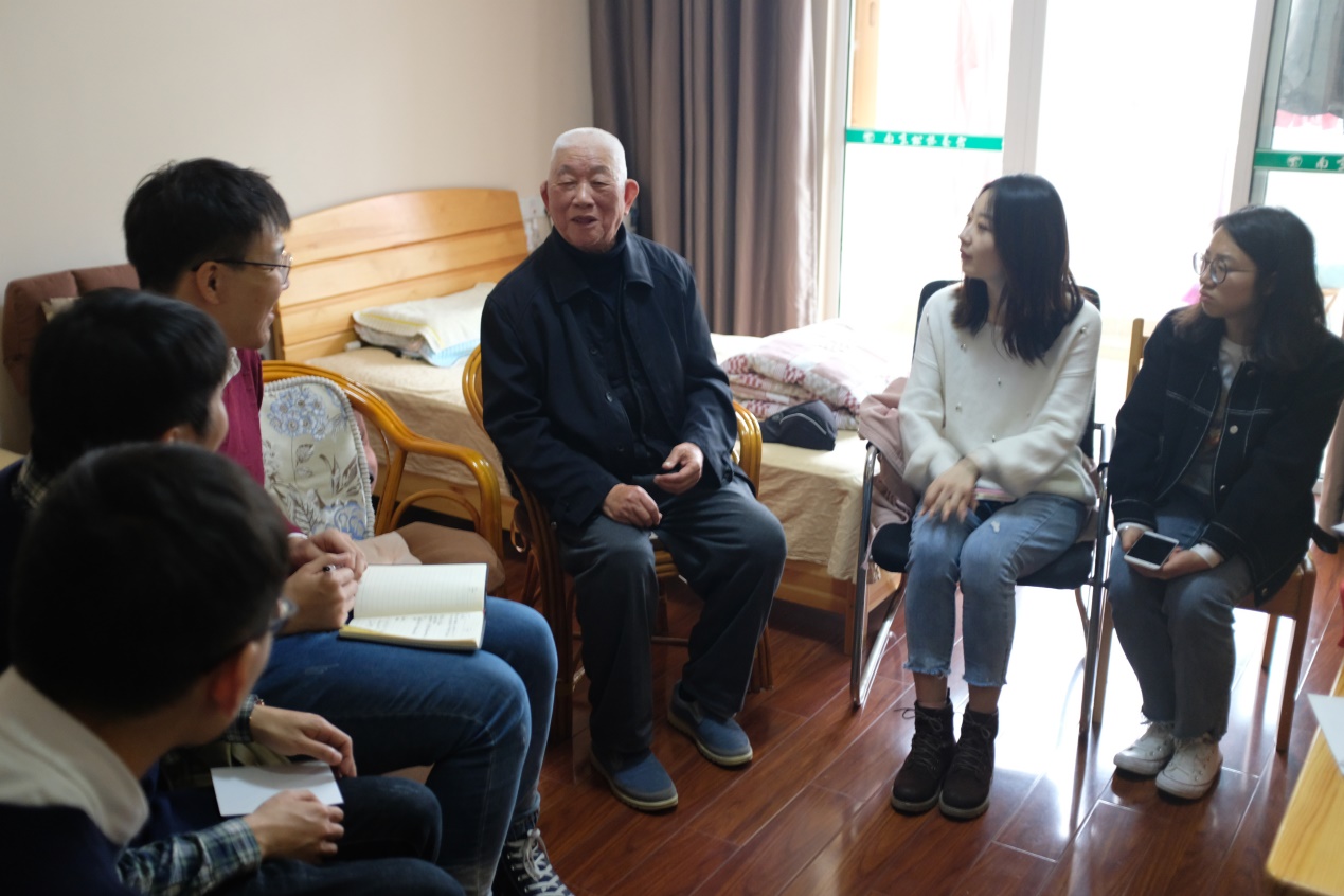 2018级中国史硕士生党支部前往养老院,拜访了荣获中共中央国务院、中央军委颁发的"庆祝中华人民共和国成立七十周年纪念章"的姜平教授。