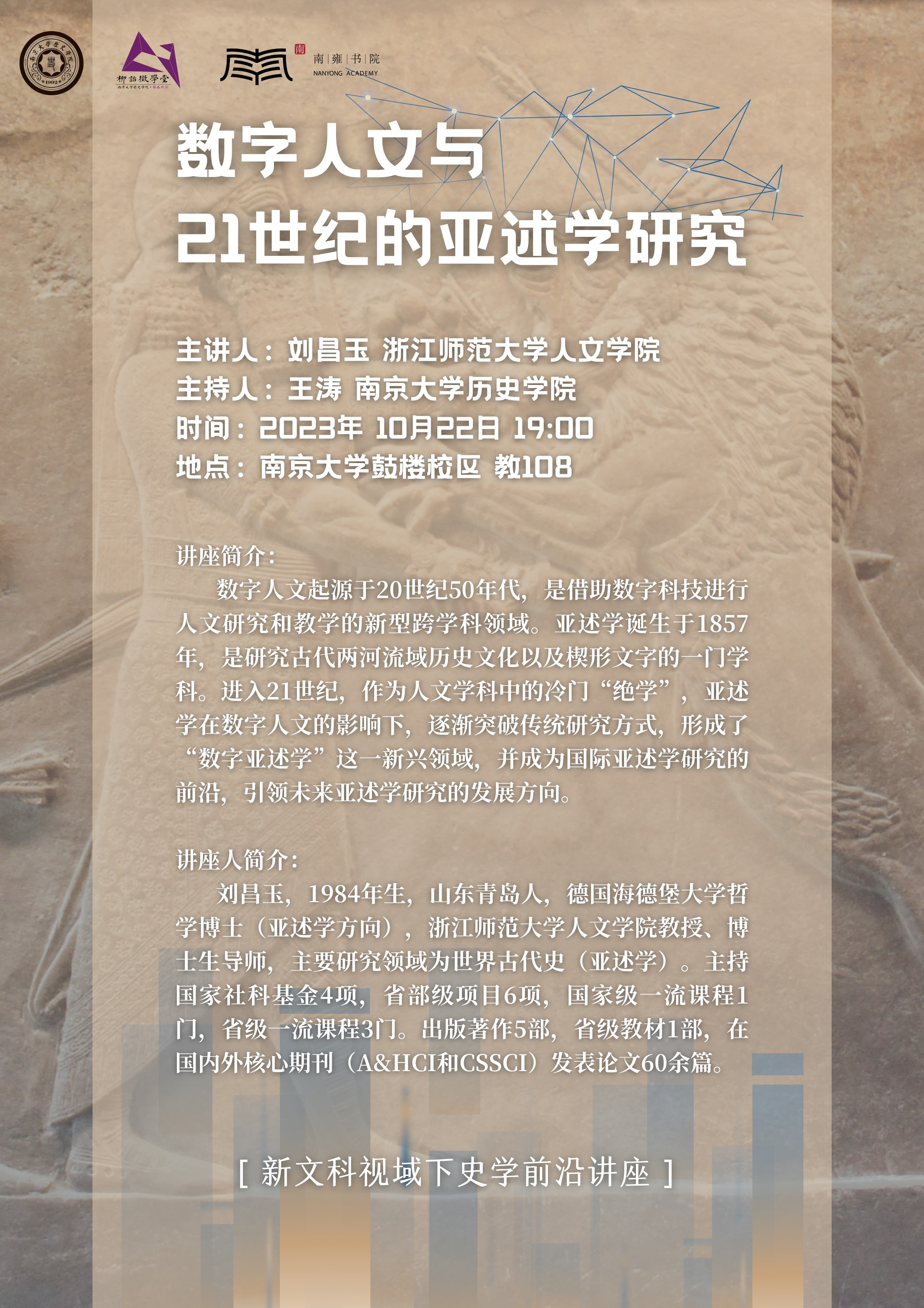 讲座预告 | 刘昌玉:数字人文与21世纪的亚述学研究