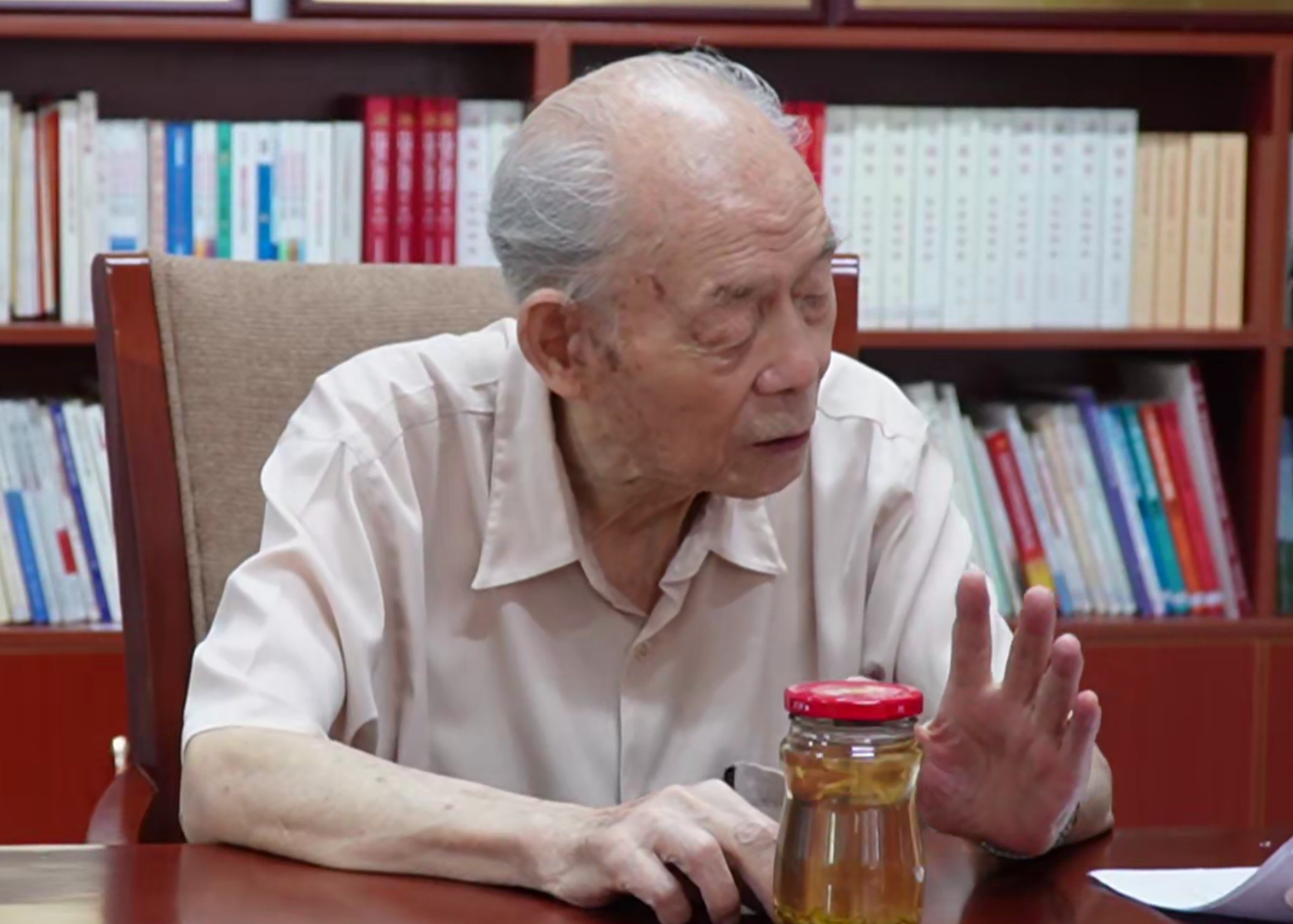 图为黎德勇老人接受采访