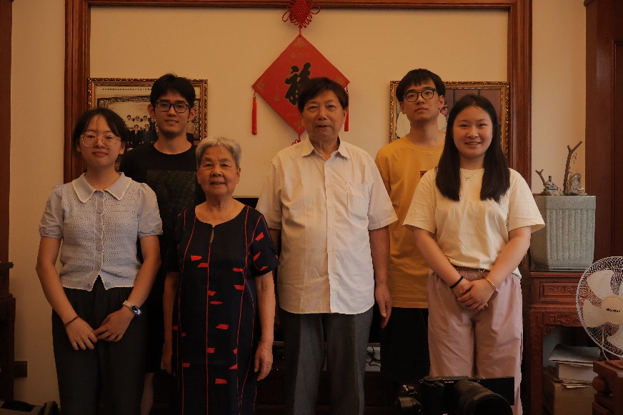 图为陈金水老人(右三)及家属与实践团队成员合照