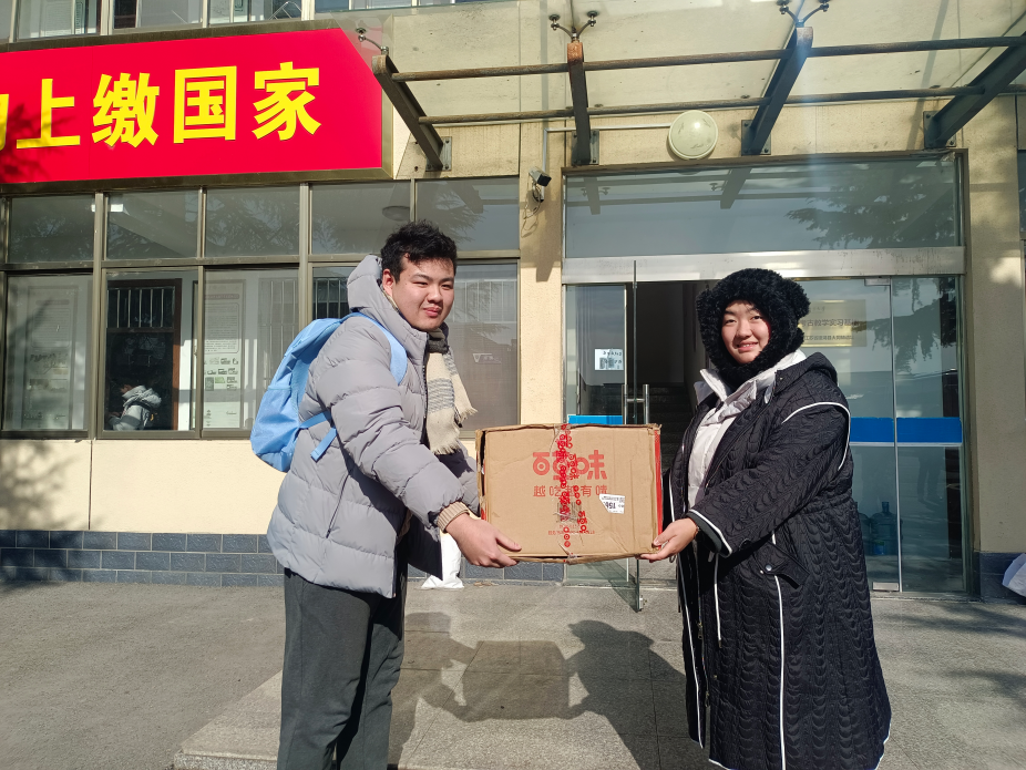 (学生会代表与基地同学代表交接慰问物资)