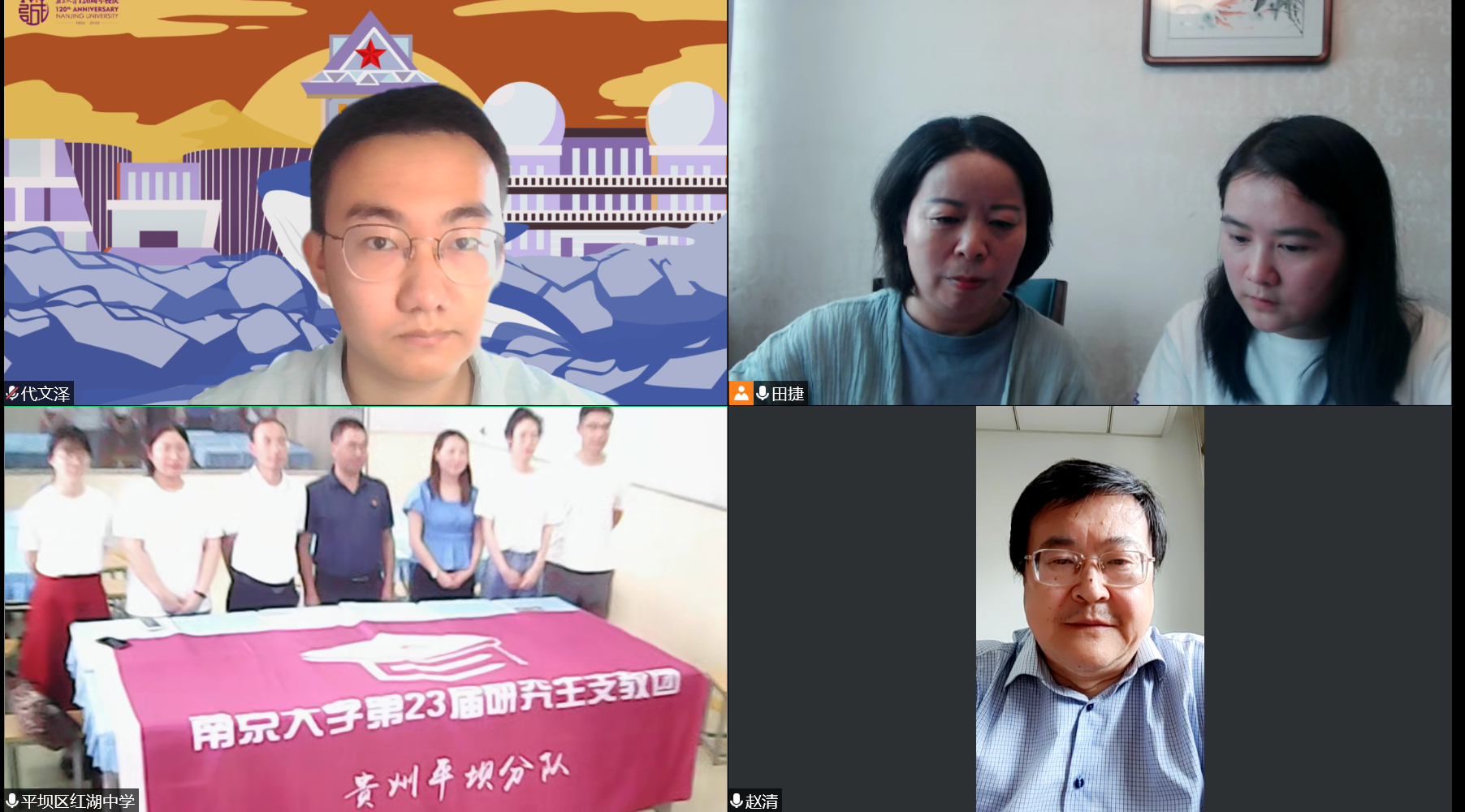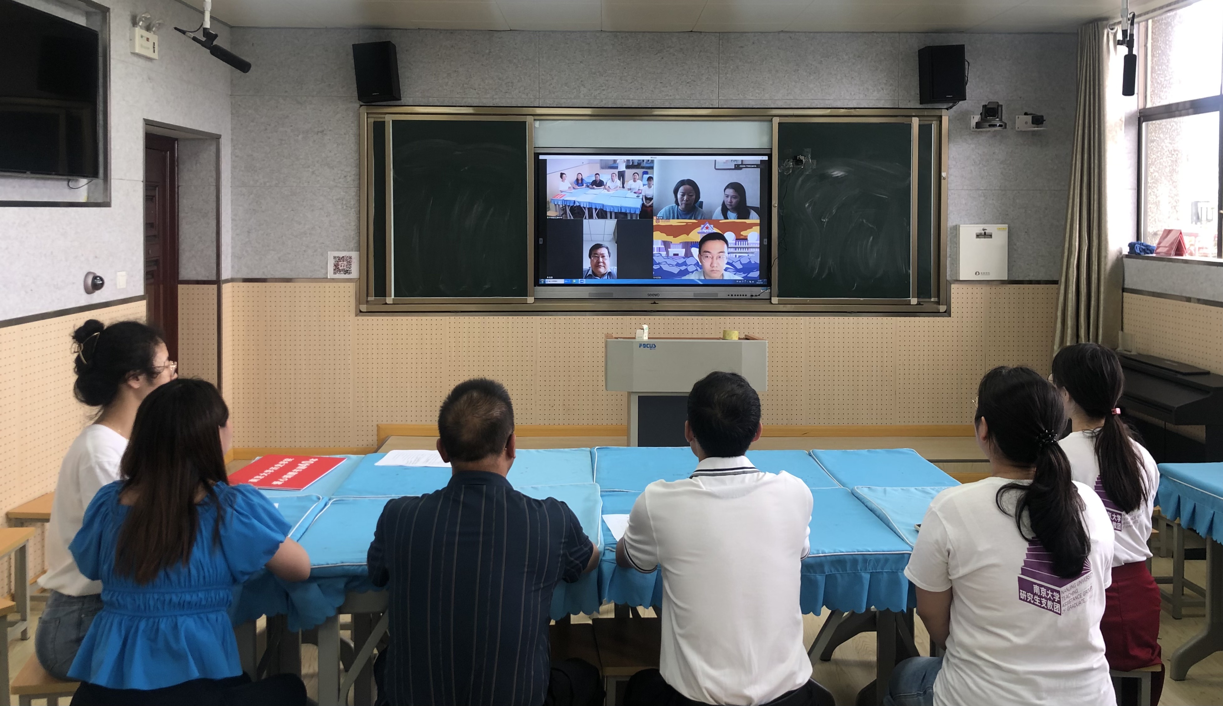 7月4日中午,91av 领导与学生代表,红湖中学校领导与研究生支教团志愿者齐聚线上,举行了简短的捐赠仪式。91av 党委书记赵清、党委副书记任玲玲、本科生党支部书记田捷与支部党员代文泽参会;红湖中学校长吴静、党支部书记王大建、团总支书记李显霞与研支团志愿者周诗玥、高豫来、唐陈嘉翊、林澍参会。