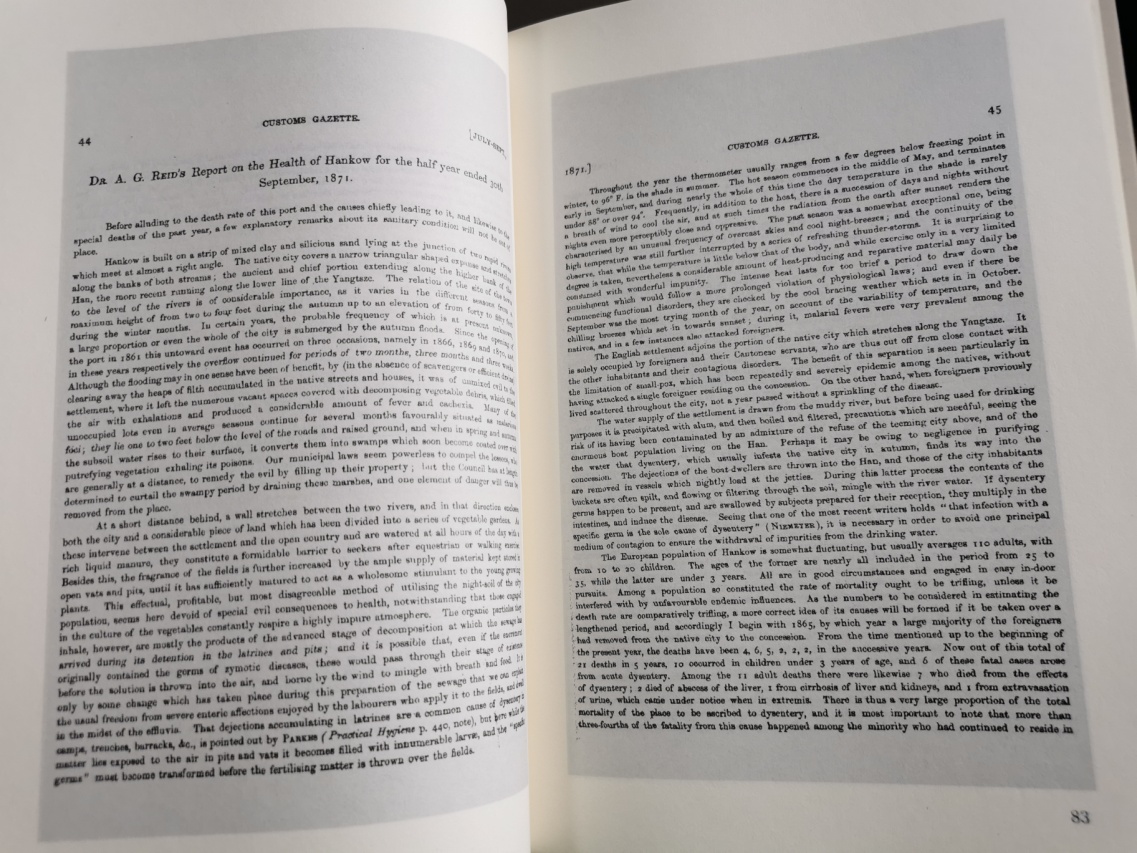 《海关医报》创刊于1871年,以中国区域性疾病考察和分析为主旨,充分展示了中医“症”与西医“疾病”从相遇、对峙到共处的转折过程,纪录了西方医生在现代科学思路的指引下,在中国乃至亚洲发现“疾病”的探索历程,为了解与研究“疾病”体系在中国被认知的历史,提供了详实的史料和充分的科学依据。