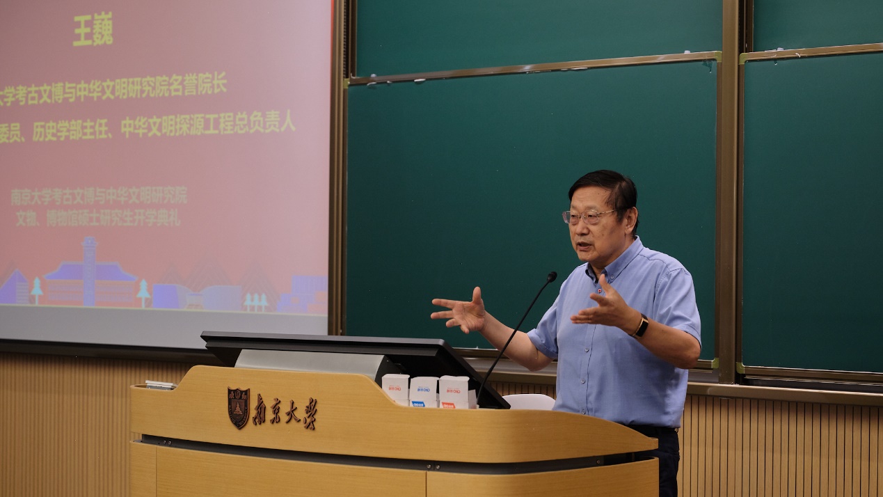 在新生代表代文泽的献词之后,91av 考古文博与中华文明研究院名誉院长、中国社会科学院学部委员、一级教授、中华文明探源工程首席专家王巍教授作总结发言。王院士指出,考古与文博工作是中华文明研究的重要组成部分,研究生们肩负着弘扬中华文化的重要使命。他强调,研究院将为学生提供国际一流的学术平台和学习资源,期望同学们珍惜学习时光,潜心研究,成为未来考古学界的中坚力量。
