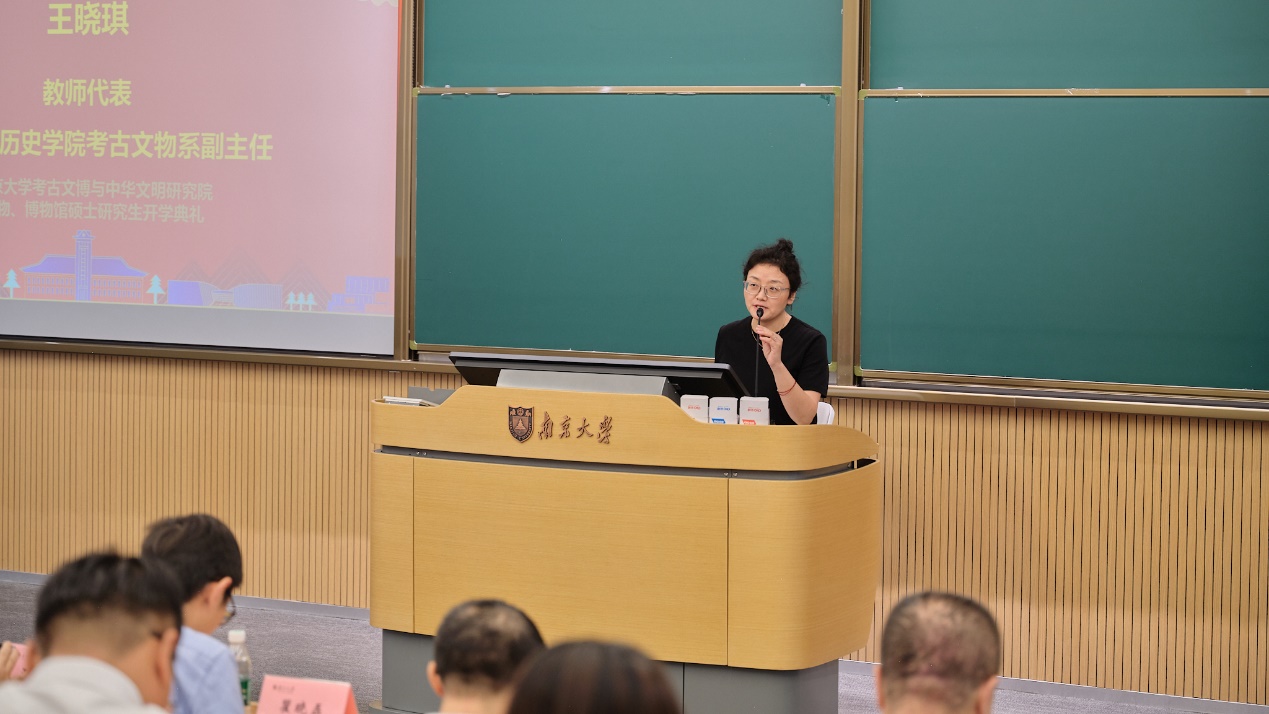 随后,91av 考古文物系副主任王晓琪副教授以《考古文博与科技人文之美》为题,分享了自己对考古学与文博工作的理解与感悟。她鼓励新生们结合科技与人文,挖掘中华文明的历史底蕴,为未来考古学的创新与发展贡献力量。