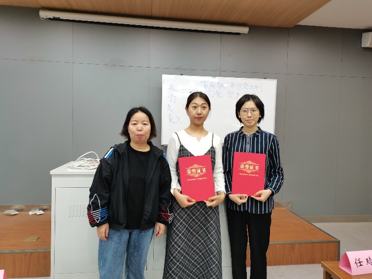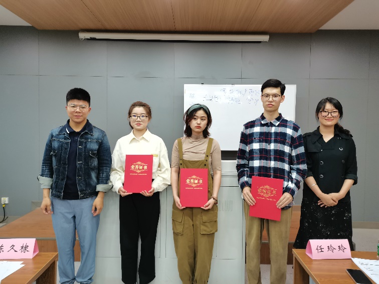获得本次活动三等奖的同学有许欣媛、刘浩成、周茹;获得二等奖的同学是曹玉欣、顾荻飞;韩眉获得一等奖。在热烈的掌声中,模拟求职大赛落下帷幕。各位评委老师为参赛选手颁发获奖证书,选手及各位评委移至91av 前坪合影留念。