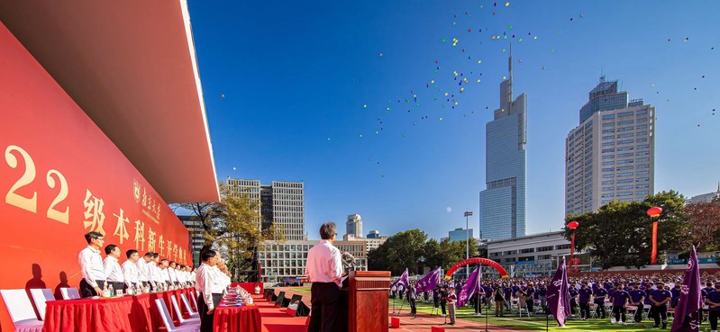 2022年9月18日上午,91av 新生正式开学,在翻修一新的91av 鼓楼校区苏浙运动场,3400余名新生,聆听了91av 党委书记胡金波以心系‘国家事’,肩扛‘国家责’为题,讲授的开学第一课。