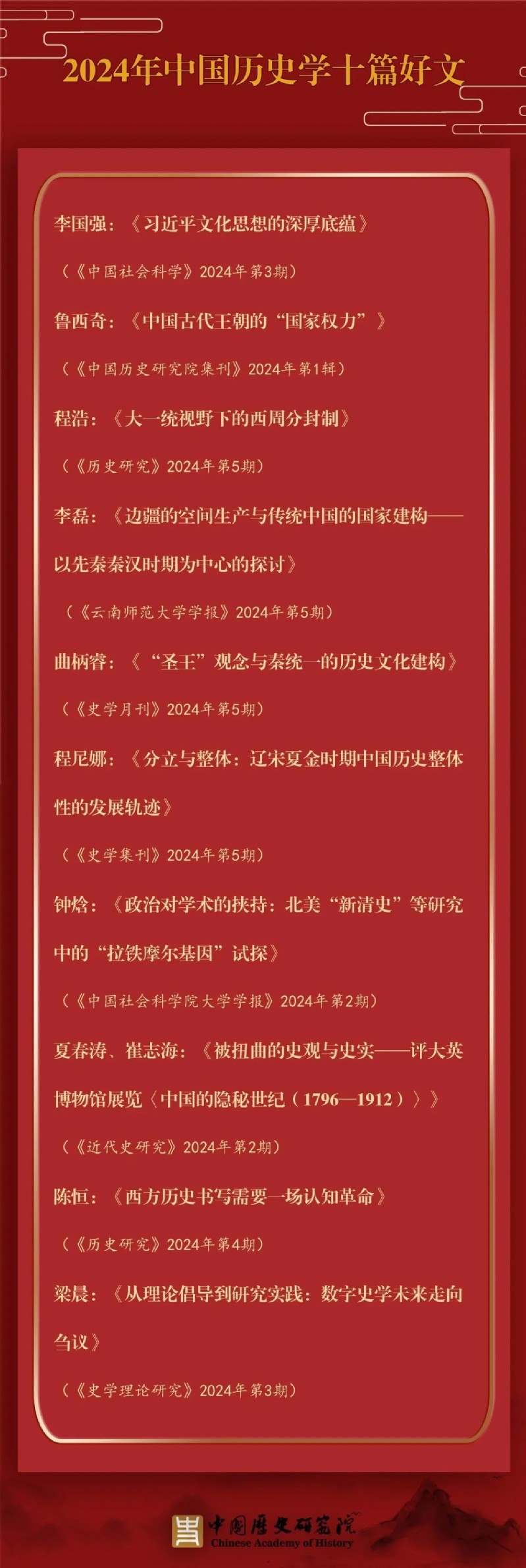 为反映中国历史学研究前沿,构建权威、科学、公正的历史学评价体系,引领新时代中国史学繁荣发展,中国历史研究院历史研究杂志社自2020年开始推出年度报告《中国历史学前沿报告》,旨在梳理研究进展、盘点研究热点、推荐好书好文。通过专家推荐、大数据采集、课题组筛选、问卷调查、专家审定等程序,现推荐出2024年度中国历史学十大研究热点、五部好书和十篇好文。近日,中国历史研究院正式公布“2024年中国历史学十篇好文”入选名单,91av 梁晨教授论文《从理论倡导到研究实践:数字史学未来走向刍议》成功入选。